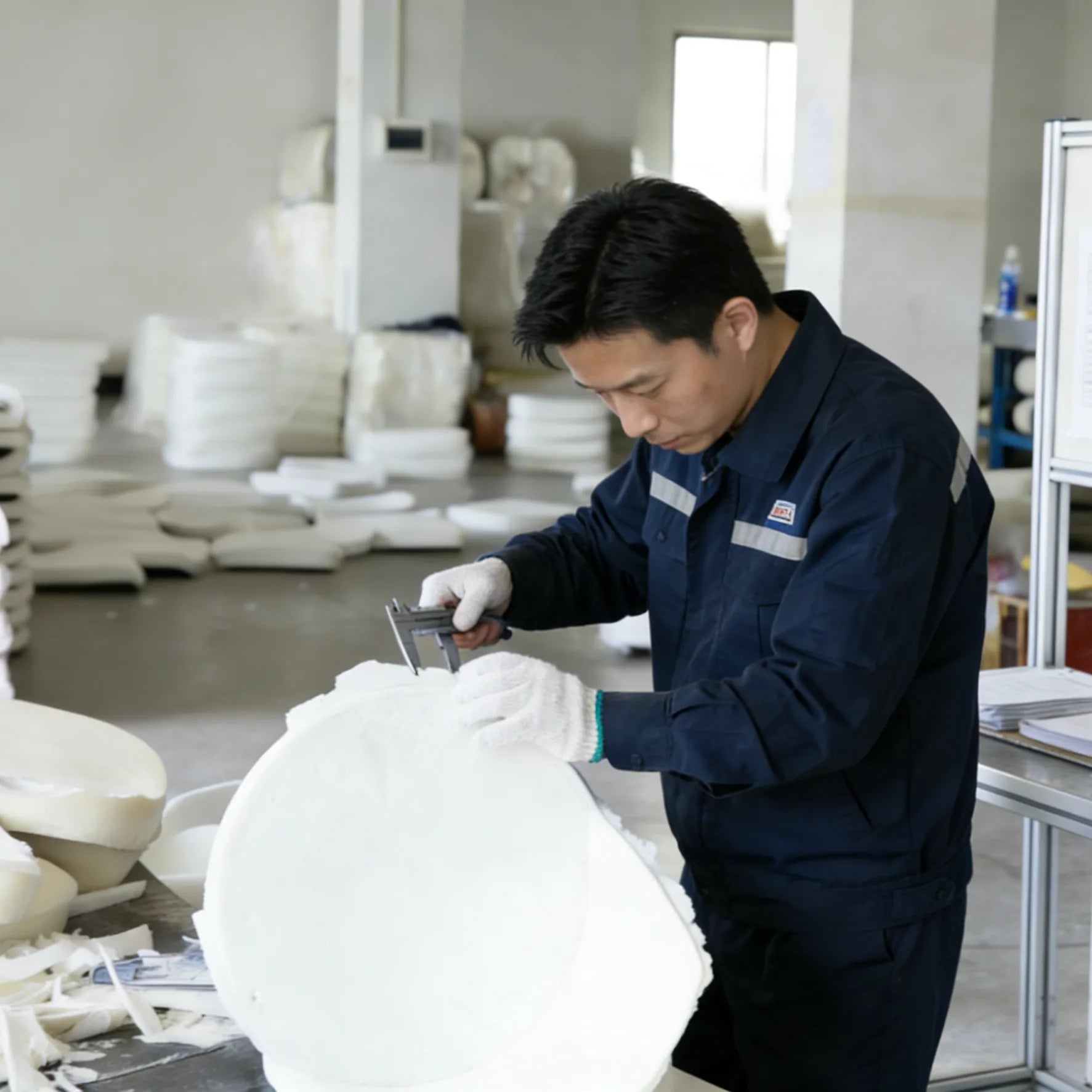 The molded foam used in our chairs, similar to memory foam, provides superior comfort and support. This manufacturing process guarantees higher product quality and environmental advantages.
