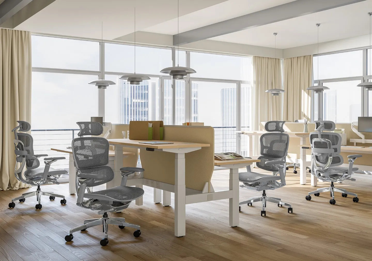 現代の企業の作業スペースに合わせて設計された、人間工学に基づいたスケーラブルな座席ソリューション。